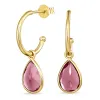 12 mm pink kristal halfcreool in verguld zilver met glanzend oppervlak en 2 glad pink kristallen.