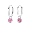 12 mm pink zirkoon creool in zilver met glanzend oppervlak en 2 facetgeslepen pink zirkonen.