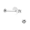 2 mm kristal oorsteker in zilver met glanzend oppervlak en 2 glad grijze kristallen.