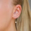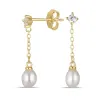 4-4,5 mm parel ketting oorbellen in verguld zilver met glanzend oppervlak en 2 facetgeslepen witte zirkonen 2 witte zoetwaterparels.