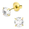 6 mm waterproof solitaire oorbel in verguld staal met glanzend oppervlak en facetgeslepen witte zirkoon.