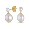 8 - 9 mm parel oorbellen in verguld zilver met glanzend oppervlak 4 witte zoetwaterparels.