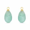 amazoniet hangers voor oorbellen in verguld zilver met glanzend oppervlak en glad groen amazoniet.