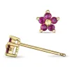 Bloem robijn oorsteker in 9 karaat goud met robijnen