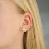 bloem oorbellen in verguld messing met glanzend oppervlak.