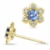 Bloem tanzanite briljant oorbellen in 9 karaat goud met tanzanite en diamant