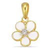 bloem hanger in verguld sterlingzilver met glanzend oppervlak en 1 facetgeslepen witte zirkonen.