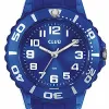 kinder horloges van kinder horloge model A65163BL8A met plaat van blauw metallic, lichtgevend cijfer en wijzer.