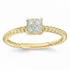 diamant ring in 14 karaat goud met glanzend oppervlak en 9 briljantgeslepen diamanten in Wesselton/si