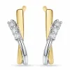 diamant oorsteker in 14 karaat goud en witgoud met glanzend oppervlak en 6 briljantgeslepen diamanten Wesselton/SI van totaal 0,06 ct.