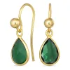 druppel groen onyx oorhaakjes in verguld zilver met glanzend oppervlak en 2 glad groene groene onyxen.