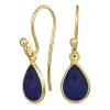 druppel jadesteen oorhaakjes in verguld zilver met glanzend oppervlak en 2 glad blauwe jadestenen.