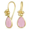 druppel roze kristal oorhaakjes in verguld zilver met glanzend oppervlak en 2 glad roze roze kristallen.