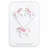 eenhoorn set met oorbellen en ketting in zilver met en glad witte emaille en glad pink emaille en glad geel emaille en glad zwart emaille.
