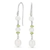 lange parel oorbellen in gerodineerd zilver met glanzend oppervlak en 4 facetgeslepen groene amethisten en 6 witte zoetwaterparels.