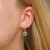 rond blauwe kristal oorbellen in verguld messing met glanzend oppervlak en 2 glad blauwe syntetische topaase.