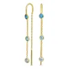lange blauwe zirkoon ketting oorbellen in verguld zilver met glanzend oppervlak en 6 facetgeslepen blauwe zirkonen.