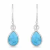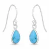 lange druppel oorbellen in zilver met glanzend oppervlak en 2 facetgeslepen groene turkooizen.