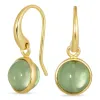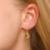 rond lichtgroene kristal oorbellen in verguld messing met glanzend oppervlak en 2 facetgeslepen groene amethisten.