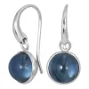 rond blauwe donkerblauw kristal oorbellen in verzilverd messing met glanzend oppervlak en 2 glad blauwe iolieten.