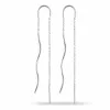 lange ketting oorbellen in zilver met glanzend oppervlak.
