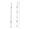 lange blauwe ketting oorbellen in zilver met glanzend oppervlak.