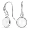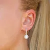 rond parel oorbellen in zilver met glanzend oppervlak 2 witte parels.