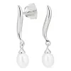 lange parel oorbellen in zilver met glanzend oppervlak 2 witte zoetwaterparels.