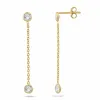 lange zirkoon ketting oorbellen in verguld zilver met glanzend oppervlak en 2 facetgeslepen witte zirkonen.