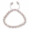 parel armband in roze zijden koord met mat oppervlak.
