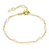 parel armband in verguld messing met glanzend oppervlak witte zoetwaterparel.