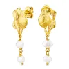 parel oorbellen in verguld messing met mat oppervlak 2 witte parels.