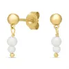 witte parel oorbellen in verguld zilver met glanzend oppervlak.