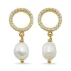 parel oorbellen in verguld sterlingzilver met glanzend oppervlak en facetgeslepen witte zirkoon 2 witte zoetwaterparels.