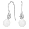 parel oorbellen in zilver met glanzend oppervlak en facetgeslepen witte zirkoon en 2 witte zoetwaterparels.