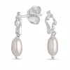 parel oorbellen in zilver met glanzend oppervlak 2 witte parels.