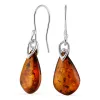 barnsteen oorbellen in zilver met glanzend oppervlak en glad cognac geverfd barnsteen.