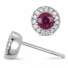 Rond robijn oorsteker in 14 karaat witgoud met diamanten en robijnen