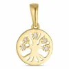 9,5 mm boom van het leven zirkoon hanger in 8 karaat goud met glanzend oppervlak en 5 facetgeslepen witte zirkonen.
