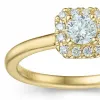 diamant ring in 14 karaat goud met glanzend oppervlak en 1 briljantgeslepen diamanten in Wesselton/si en 12 briljantgeslepen diamanten in Wesselton/si