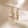 druppel oorbellen in 9 karaat goud met glanzend oppervlak en 2 facetgeslepen witte zirkonen en 2 facetgeslepen witte zirkonen.