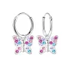 vlinder veelkleurig kinder oorbellen in zilver met glanzend oppervlak en glad veelkleurig kristal.