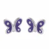 vlinder oorsteker in zilver met glanzend oppervlak en glad paarse emaille.