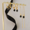 zwart zirkoon ketting oorbellen in verguld zilver met glanzend oppervlak en facetgeslepen zwart zwart zirkoon.