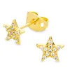 ster zirkoon oorbellen in verguld messing met glanzend oppervlak en facetgeslepen witte zirkoon.