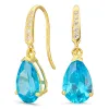 druppelvormige oorbellen in 9 karaat goud met glanzend oppervlak en facetgeslepen blauwe topaas en facetgeslepen witte zirkoon.