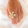 waterproof bloem verstelbaar ring in verguld staal met glanzend oppervlak.