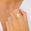 waterproof bloem ring in verguld staal met glanzend oppervlak.