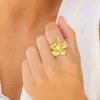 waterproof bloem ring in verguld staal met glanzend oppervlak.