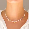 waterproof hart ketting in verguld staal met glanzend oppervlak witte synthetische parel.